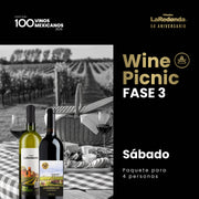 Adquiere ahora tu preventa Wine Picnic para el Festival 100 Vinos Mexicanos 2026 y disfruta. Este paquete es para 4 personas.
